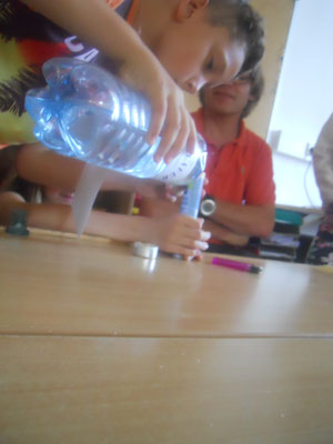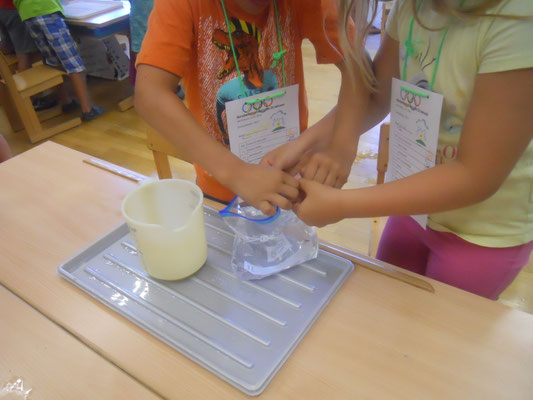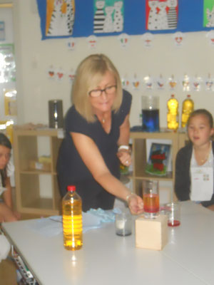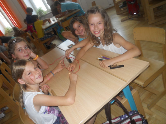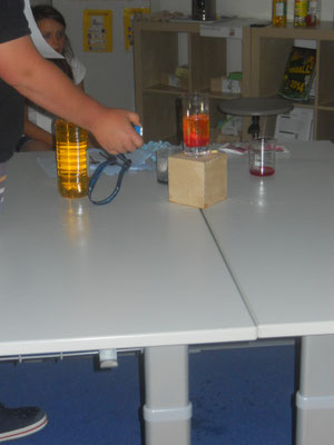 Alle Kinder der Schule wanderten in Gruppen von Klassenzimmer zu Klassenzimmer um dort Experimente und naturwissenschaftliche Phänomene zu beobachten und oft auch um diese dann selber auszuprobieren.